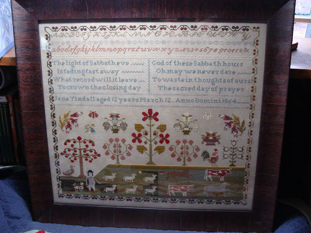 As is so often the case, the picture doesn't do it justice at all. For one thing, it's not stitched on white linen. There are also smalls to go with the piece.