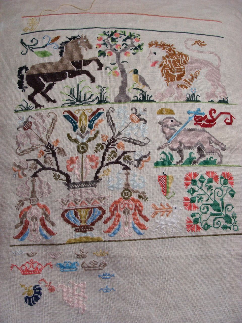These motifs are huge and take forever to finish. The deer and weird fruit looking thing and the crowns were refreshing in comparison.